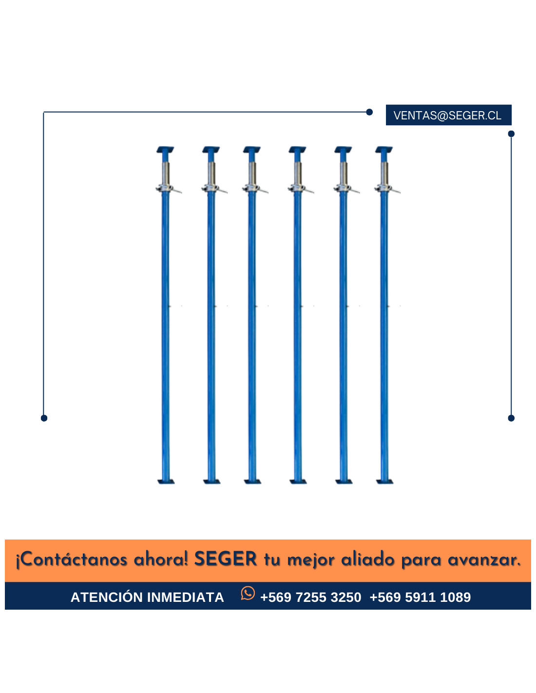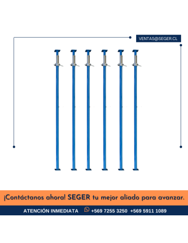 Puntal telescópico de acero galvanizado, fabricado con tubo exterior de 56mm y 48mm. Base de 5 mm o 6 mm de espesor según sea el caso. Las alzaprimas, también conocidas como puntales de construcción, se utilizan para el apuntalamiento y soporte de estructuras en construcción, como losas, muros, vigas y encofrados.