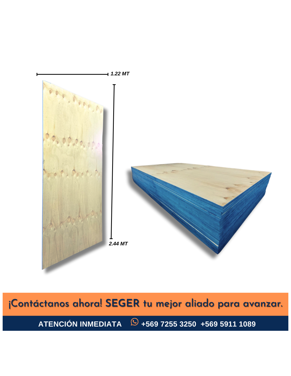 Una de las placas de madera más elegidas en la construcción por sus múltiples características. Ideal para uso en aplicaciones constructivas de carácter estructural. Es recomendable su uso para hormigones que tengan un tratamiento posterior como pintado, estucado, entre otros. Alta resistencia y peso ligero