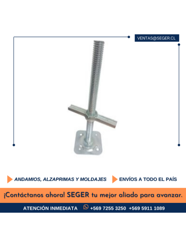 Uso: Para regular la altura del sistema de andamiaje. Para nivelar el sistema de andamiaje cuando este está sobre una superficie irregular.